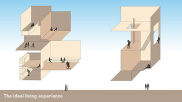 The proposal transforms the three separate buildings into one whole complex - which adjusts itself to the uses of its users, while caring for most of their daily needs.